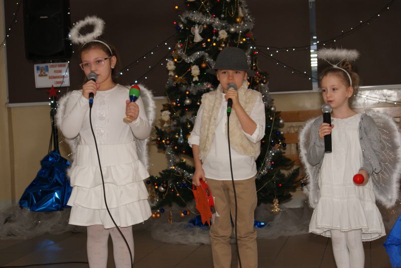 Chociaż jury otrzymało symboliczne różowe okulary, to jednak nie były one potrzebne, gdyż wszyscy uczestnicy stanęli na wysokości zadania i pokazali swoje umiejętności wokalne i sceniczne. Konkurs oficjalnie otworzył Dyrektor szkoły, życząc wszystkim powodzenia. Dzieci z klas I-V zaprezentowały najpiękniejsze kolędy, współczesne pastorałki i zimowe piosenki solo, w duetach, a nawet tercetach z podkładem muzycznym lub a capella.