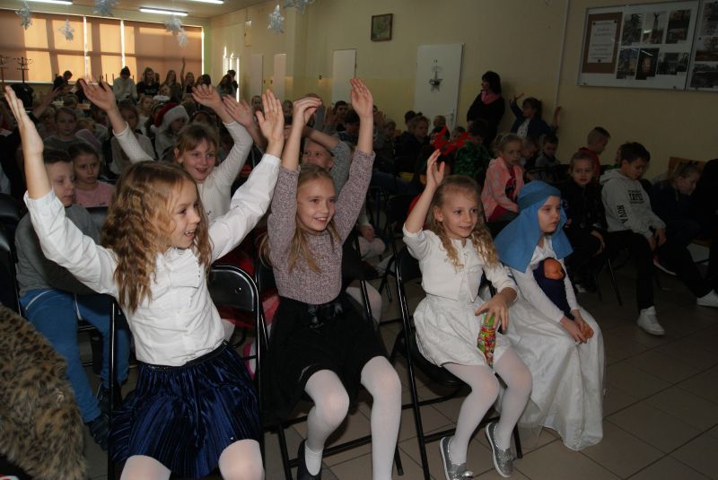 Dzieci wystąpiły w pięknych kostiumach lub odświętnych strojach, gdyż takie było również założenie regulaminu. Wokalistom pomagała publiczność, którą stanowili uczniowie klas młodszych.