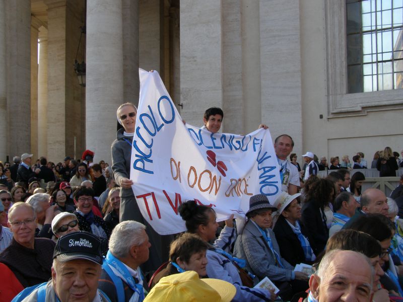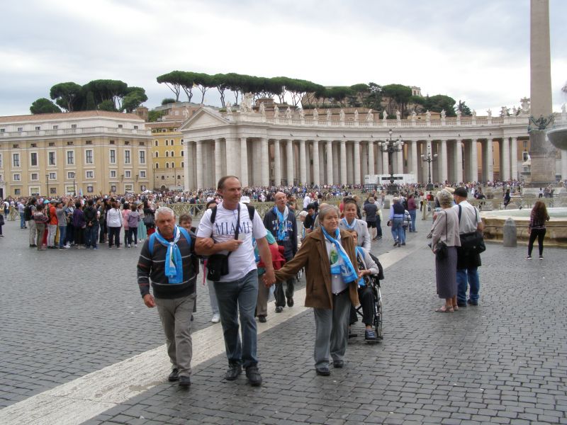 Pielgrzymi z domu "Piccolo Cottolengo Friulano" z Santa Maria La Longa uczestniczyli w Mszy świętej inaugurującej Synod Biskupów nt młodzieży w Rzymie. Grupa liczyła dwadzieścia siedem osób, w tym osiemnaście z niepełnosprawnością fizyczną i intelektualną, którym towarzyszyli: ks. Dan, s. M. Ewelina, s. M. Agnieszka, a także ekipa opiekunów i pielęgniarka.Pobyt w Rzymie trwał od 1 do 5 października. Po przybyciu do Wiecznego Miasta pielgrzymi zakwaterowani zostali w "Casa Accoglienza di Don Orione" na Monte Mario, skąd wyruszali codziennie autokarem, by realizować kolejne punkty swojego programu. Oczywiście, najważniejszym i niezapomnianym wydarzeniem było spotkanie z Papieżem Franciszkiem podczas Mszy świętej na Placu Świętego Piotra. Swoją radość i synowskie przywiązanie do "słodkiego Chrystusa na ziemi" - jak określał papieża św. Alojzy Orione - podopieczni Małego Cottolengo wyrazili za pomocą transparentu z napisem: "Ojcze święty, kochamy Ciebie".Nie mniej ekscytujące okazały się wyprawy do innych miejsc, których nie może pominąć żaden turysta przybywający do Wiecznego Miasta. Pielgrzymi z Santa Maria La Longa zwiedzili Muzeum Watykańskie, Bazylikę św. Piotra, gdzie modlili się m. in. przy grobie Jana Pawła II, polecając się jego wstawiennictwu. Ostatniego dnia pobytu odbyli także przejażdżkę autokarową, by zobaczyć najważniejsze zabytki miasta m. in. Zamek Anioła, Koloseum, Ołtarz Ojczyzny. Oczywiście, wszyscy mieli możliwość wysłania pocztówek do rodzin i nabycia pamiątek w sklepikach rozsianych wśród wąskich uliczek zaraz za kolumnadą św. Piotra. Pielgrzymka była prawdziwym czasem łaski, pełnym radości i wzruszenia. O tym, ze warto było podjąć ten trud świadczyły uśmiechnięte twarze podopiecznych Małego Cottolengo. W ich imieniu wyrazy wdzięczności kierujemy wobec wszystkich osób, które wsparły tę inicjatywę duchowo i materialnie, poświęciły swój czas i wysiłek. Deo gratias!