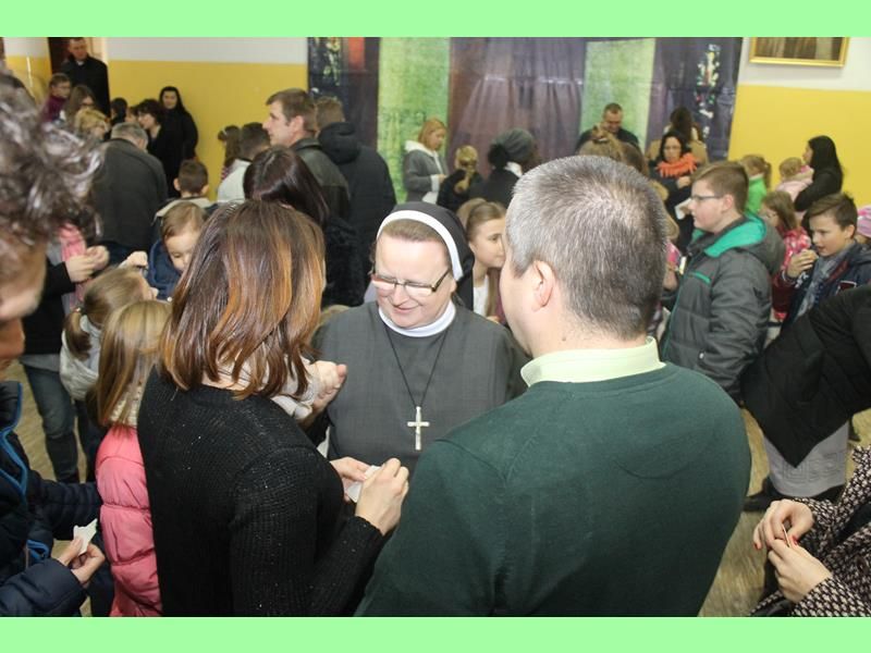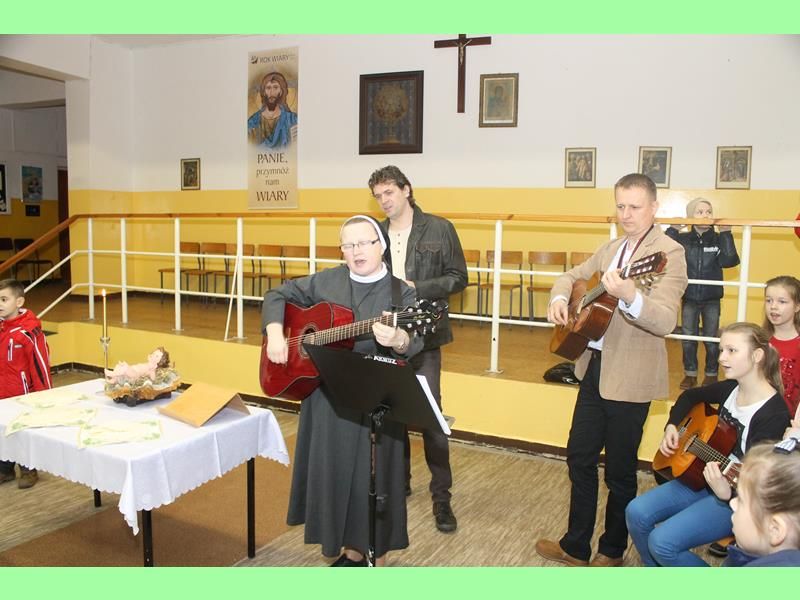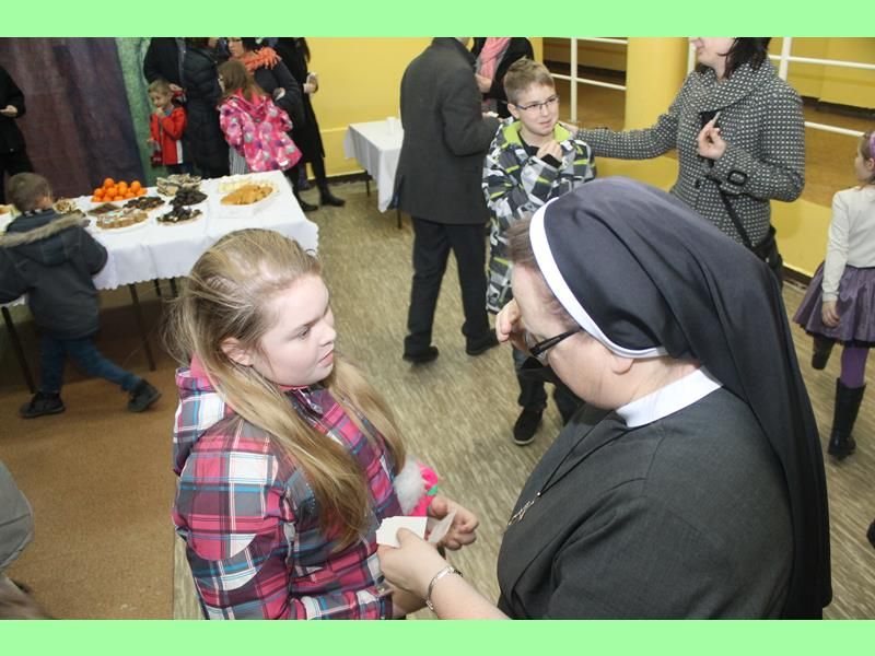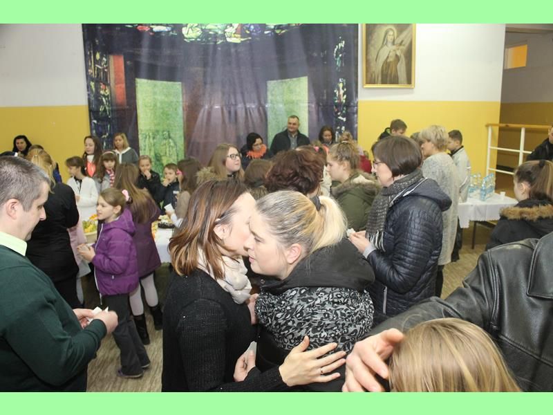 Po odczytaniu fragmentu Ewangelii i złożeniu życzeń przez Siostrę i Księdza nastąpiło dzielenie się się opłatkiem i skłądanie zyczeń. Podczas światecznego spotkania nie zabrakło śpiewu kolęd, był też słodki poczęstunek przygotowany przez Rodziców.