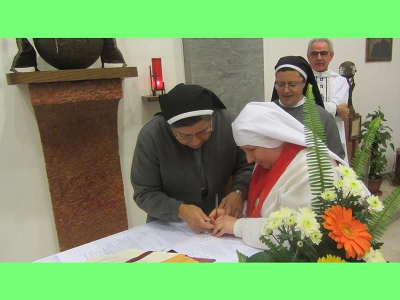 Dnia 8 grudnia bieżącego roku w kaplicy Domu Generalnego w Rzymie odnowiła po raz kolejny swoją profesję zakonną siostra Maria Dominika Maciejewicz od Bożego Miłosierdzia. Ślub czystości, ubóstwa, posłuszeństwa i miłości złożyła na ręce Matki Generalnej Marii Mabel Spagnuolo zgodnie z Konstytucjami Sióstr Małych Misjonarek Miłosierdzia w ramach wspólnoty Sióstr Sakramentek Niewidomych. Aktem tym ofiarowała swoje kalectwo Bogu w intencji wszystkich osób, które nie znają prawdy, a poprzez adorację Eucharystyczną, do której się zobowiązała, będzie wsparciem dla Papieża i całego Kościoła, a w szczególny sposób dla tych, którzy żyją charyzmatem Świętego Alojzego Orione. Niech Matka Boska ją prowadzi i otoczy Swoją Macierzyńską opieką a święci Patronowie Zgromadzenia niech za nią orędują, tak jak sama o to prosiła podczas uroczystej Eucharystii w dniu Niepokalanego Poczęcia Najświętszej Maryi Panny.