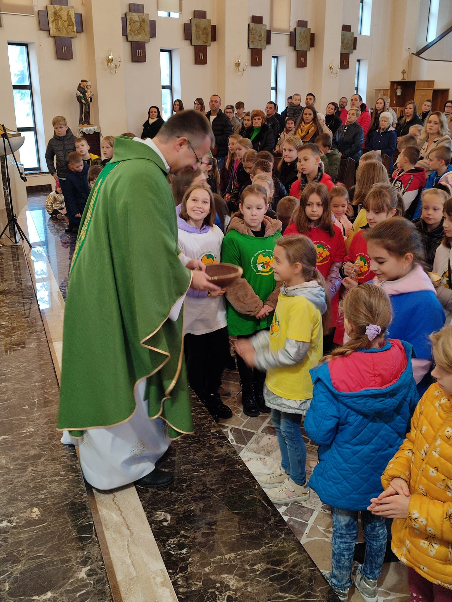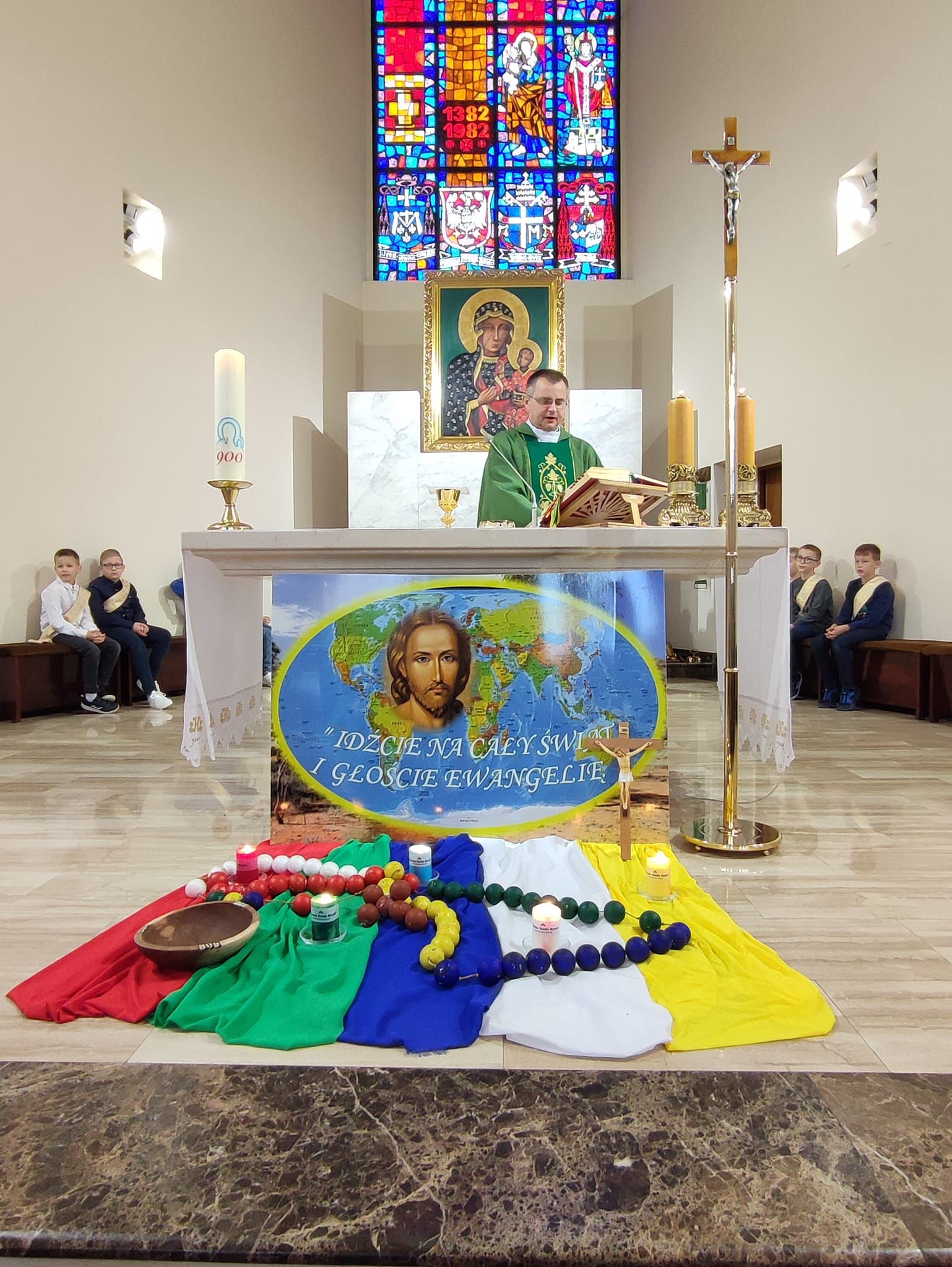 Niedziela misyjna w parafii Matki Bożej Częstochowskiej w Kole, gdzie posługują Siostry Orionistki. Podczas Mszy świętej modlono się szczególnie za wszystkie dzieci mieszkające na 5 kontynentach. Po Mszy świętej odbył się kiermasz, z którego dochód będzie przeznaczony na potrzeby misji. Deo gratias!