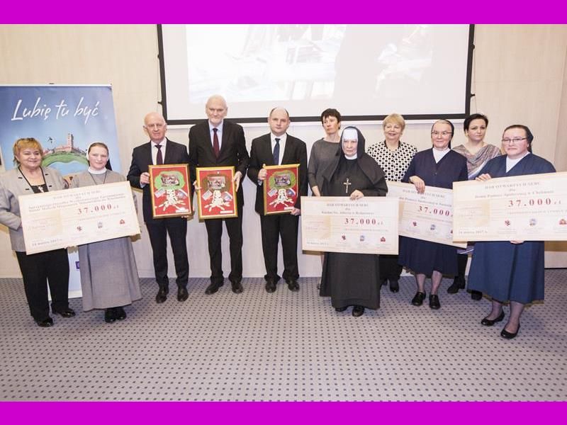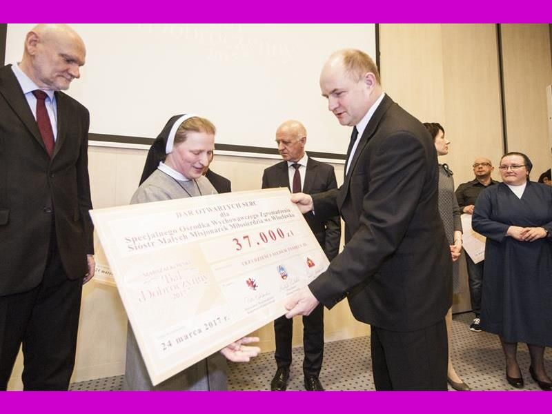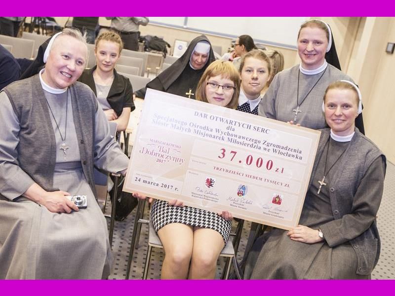W dniu 24 marca 2017r. w Urzędzie Marszałkowskim w Toruniu miało miejsce przekazanie czeku pieniężnego z uzyskanych funduszy w czasie VII charytatywnego Balu Marszałkowskiego. Beneficjentami było 5 placówek świadczących pomoc potrzebującym w regionie, w tym Ośrodek Wychowawczy Sióstr Orionistek we Włocławku. Marszałek województwa Piotr Całbecki wraz z współorganizatorami - prezydentami Torunia i Grudziądza, podziękował darczyńcom za udział w balu oraz licytacji. S. Marta Kalinowska dyrektor SOW w imieniu beneficjentów wyraziła wdzięczność organizatorom za przekazane fundusze, które w naszym Ośrodku będą przeznaczone na inwestycję związaną z ochroną przeciwpożarową budynku. Pamiątką dla organizatorów staną się upominkowe dyplomy, które wykonały dziewczęta z SOW pod opieką wychowawców. Zapraszamy do fotogalerii, fot. A. Goiński