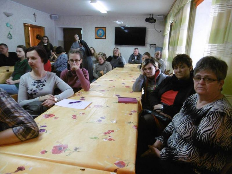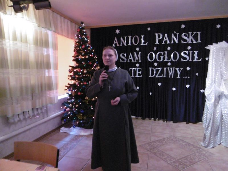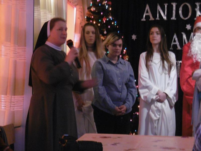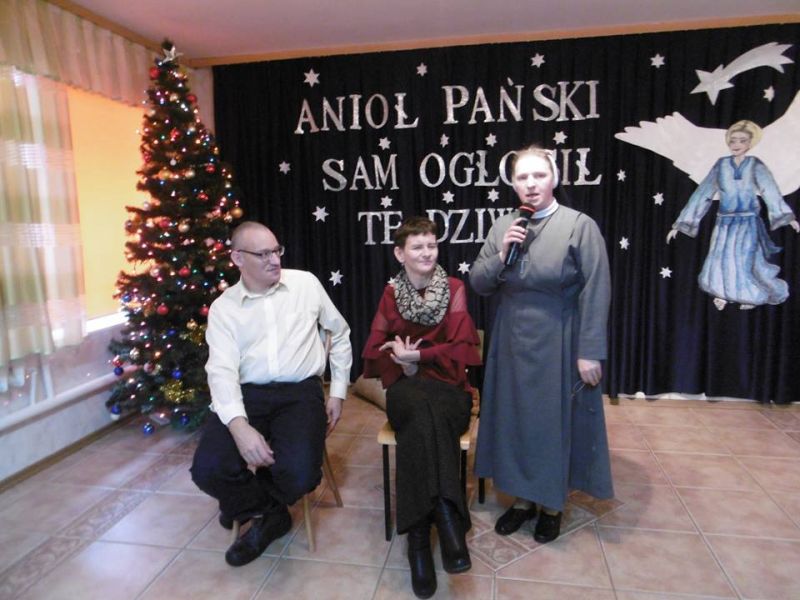 Oczekiwany dzień nastał – zimowy zjazd rodzin. Od samego rana trwały gorące przygotowania, a potem… już tylko wyczekiwanie na Kochanych Rodziców i Opiekunów. Spotkanie otworzyło przedstawienie Jasełek. Znów na scenie królował „Wędrowny Anioł”. Następnie kilka słów o sprawach bieżących powiedziała do zebranych Rodziców Siostra Dyrektor Marta Kalinowska. Później oddała głos zaproszonym gościom Państwu Małgorzacie i Dariuszowi Waszkiewiczom. Dali Oni świadectwo miłości małżeńskiej i pokonywania trudów związanych z ich niepełnosprawnością. Zachęcali dziewczęta do stawiania sobie wymagań, a Rodziców do mądrej pomocy dzieciom poprzez przygotowanie ich do samodzielnego życia. Po tym wzruszającym świadectwie był czas na obejrzenie prezentacji przygotowanie przez s. Judytę Musiał i zapoznanie się z życiem codziennym Ośrodka oraz z wydarzeniami szczególnymi i niezapomnianymi. Film obudził w dziewczętach miłe wspomnienia. Uroczystość zakończyła się wspólnym obiadem. Rodzice wyjeżdżali przepełnieni dumą ze swoich pociech. Deo gratias!