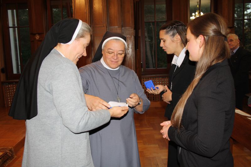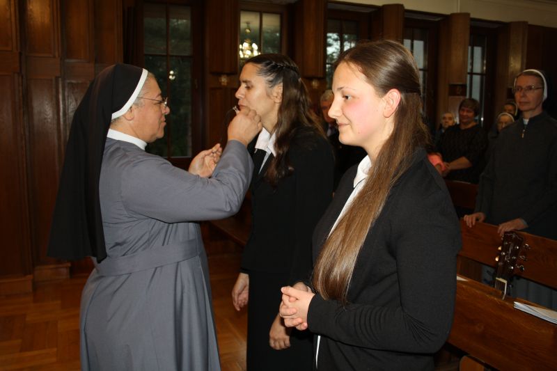 i Wikaria Generalna S.M. Sylwia Zagórowska. Podczas Eucharystii, którą celebrował Ks. Czesław Wujkowski, kapelan Domu Prowincjalnego w Zalesiu Górnym, w której również uczestniczyły rodziny Magdaleny i Aleksandry, Matka Generalna wręczyła postulantkom poświęcone krzyżyki jako znak wiary i przynależności do Jezusa Chrystusa i różańce święte jako oręż w walce o osobiste zbawienie i całego świata.